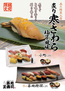 「炙りぶりひら」の入った旬の築地特撰にぎりと旬の小町にぎりもご用意しております。